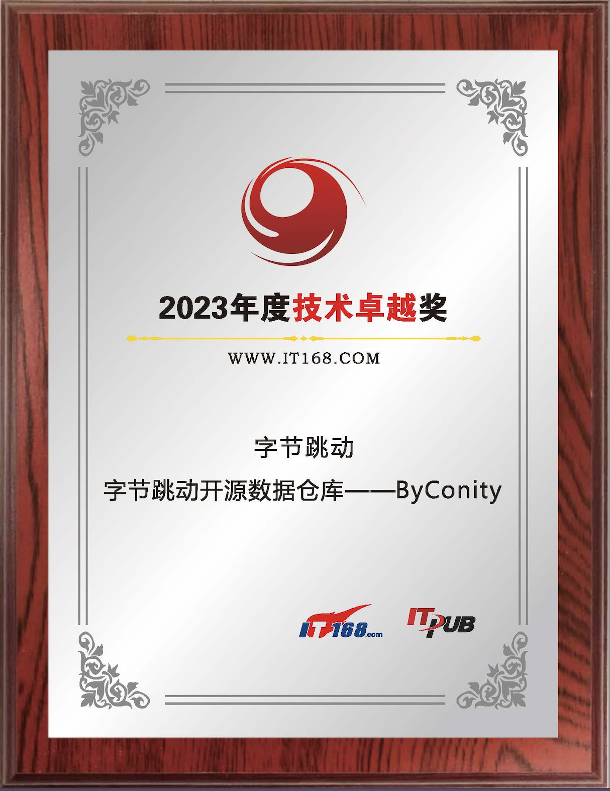 在众多开发者及合作伙伴的鼎力支持下,ByConity 社区在过去一年取得了开源圈内的荣誉。我们荣获了思否「2023 中国技术先锋年度榜单—中国技术品牌影响力企业」、IT168「2023 年度技术卓越奖」等开源奖项,得到了在大数据领域的影响力和专业度。