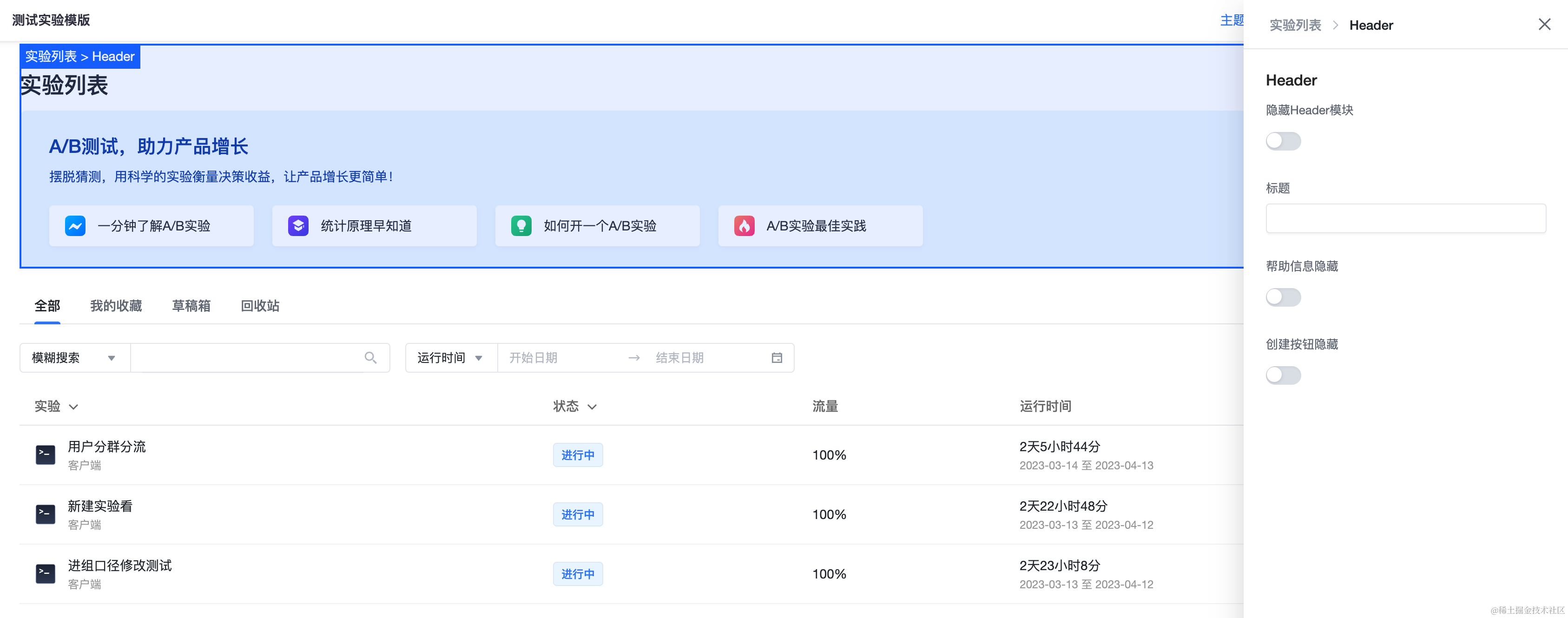 在集成工作台的可视化操作页面编辑好需要的定制A/B测试页面后,企业用户可以通过微前端方式嵌入到自己的系统中,让企业的产品运营人员可以在自己熟悉的系统中开启A/B测试,提升增长实验操作的流畅性,增强一体式体验。