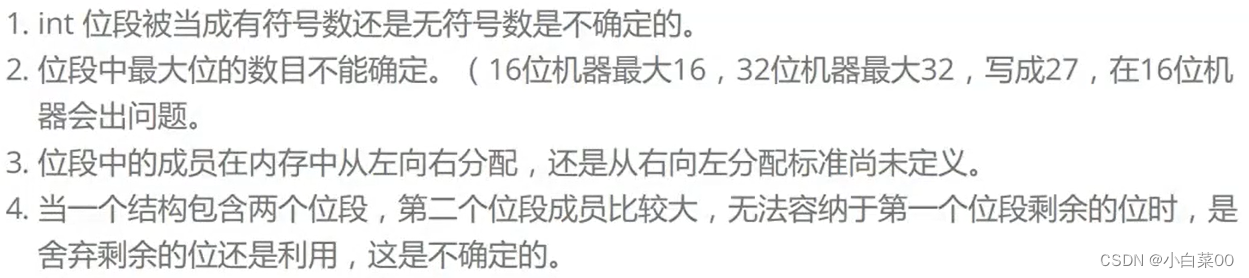 总结:和结构相比,位段可达到同样的效果,但是可以很好的节省空间,但是有跨平台问题的存在。