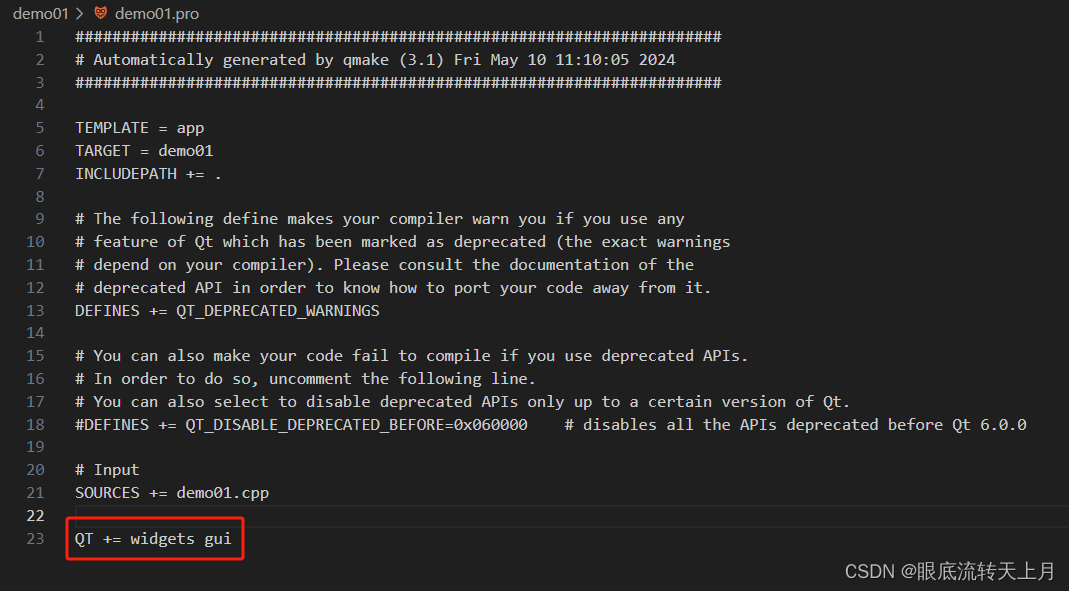 使用记事本或者vscode打开.pro文件,添加下面语句