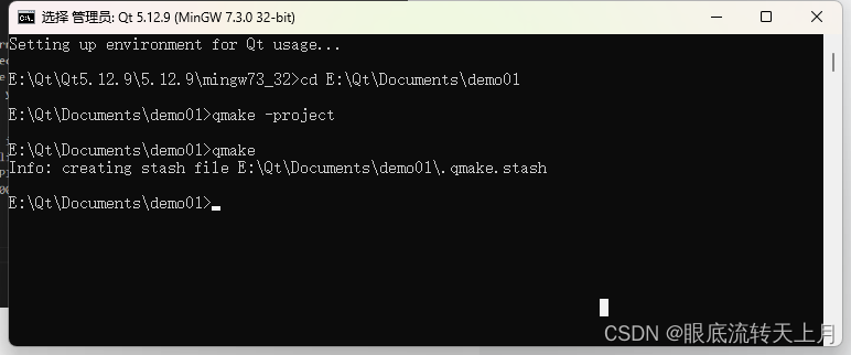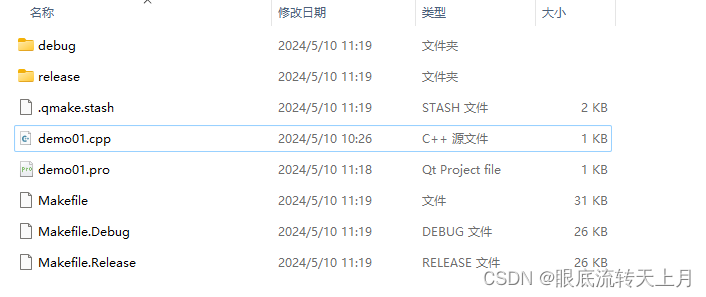 在命令行窗口执行qmake -project命令,源码目录下会多了一个.pro文件