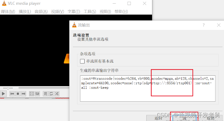 第一个VLC串口推流服务地址:rtsp://:8554/rtsp001 或则 rtsp://127.0.0.1:8554/rtsp001