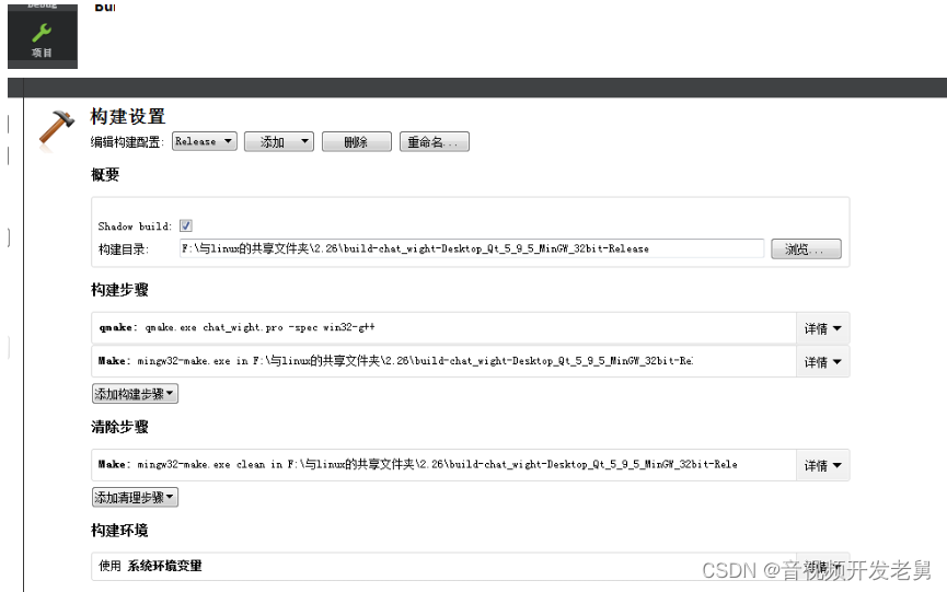 (1)首先,在QT软件内打开自己的一个项目,用在左下角选择Releases方法来重新编译一次。