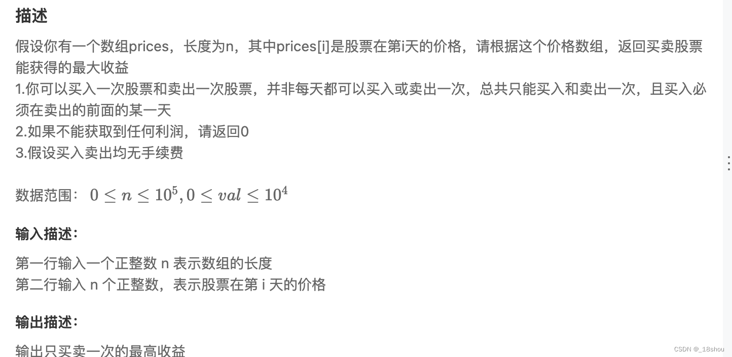 牛客每日刷题之数组 ✅作者简介:我是18shou,一名即将秋招的java实习生✨个人主页:_18shou🔥系列专栏:牛客刷题专栏📃推荐一款模拟面试、刷题神器👉 在线刷题面经模拟面试目录看题1之二维数组中的查找思路1代码1复杂度1题目2之数组中重复的数字思路2.1代码2.1复杂度2.1思路2.2代码2.2复杂度2.2📃结语 在一个二维数组array中(每个一维数组的长度相同),每一行都按照从左到右递增的顺序排序,每一列都按照从上到下递增的顺序排序。请完成一个函数,输入这样的一个二维数组和一个整数,判断数组中是否含有该整数....