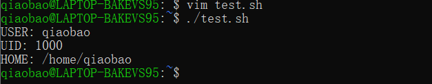 其中环境变量USER、UID、HOME 分别表示登录到系统的用户名、用户的系统ID、用户的默认主目录