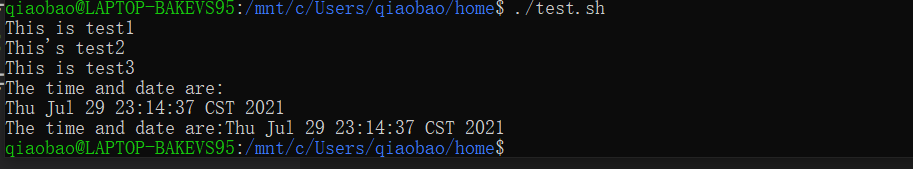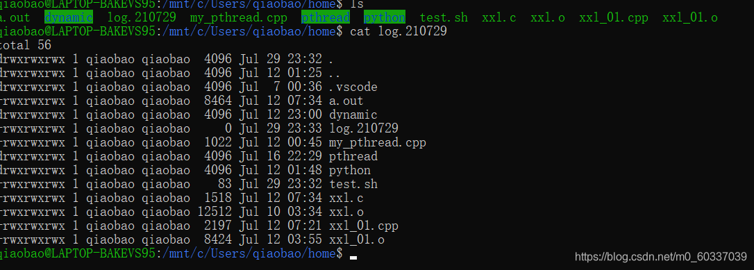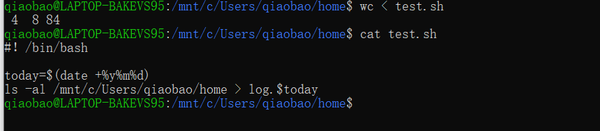 ls -al /mnt/c/Users/qiaobao/home > log.$today