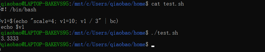 备注:bash shell 只能支持整数运算,不支持浮点数运算