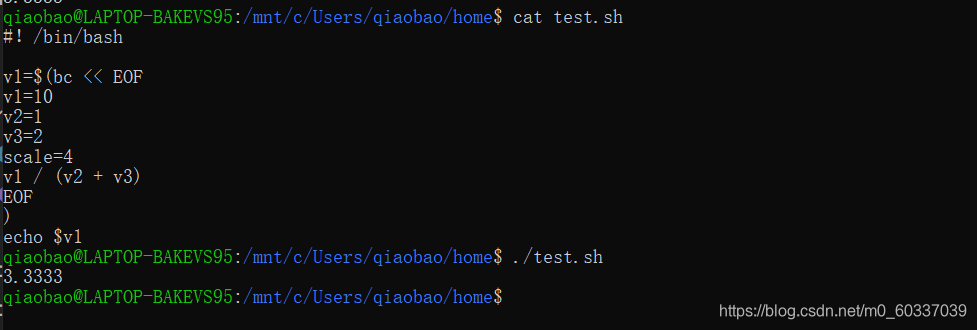 当我们需要进行大量计算时,在脚本中可以使用内联输入重定向(<<)对bc进行多个输入