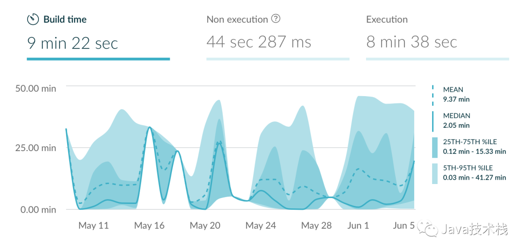 Spring Boot 官方也给出了数据,一次完整的 Maven 项目构建一般需要一个小时或者以上,而在过去的 4 周时间内,使用 Gradle 构建的平均时间只用了 9 分 22 秒!!!