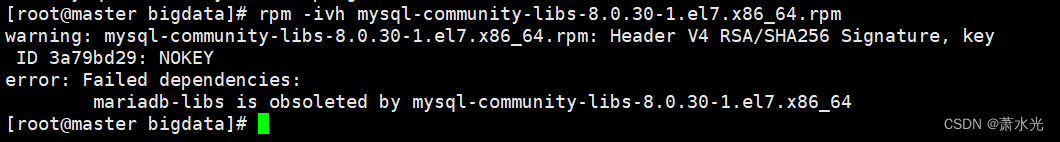 重新执行上面的安装命令:rpm -ivh mysql-community-libs-8.0.30-1.el7.x86_64.rpm