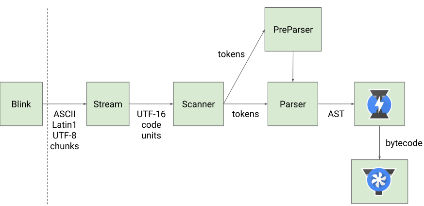 V8引擎工作原理 V8引擎首先对源码进行Parse(解析)生成token,然后对token进行编码生产 AST(Abstract Syntax Tree)抽象语法树,然后AST通过ignition转化为字节码,然后对token进行编码生产 AST(Abstract Syntax Tree)抽象语法树,然后AST通过ignition转化为字节码。