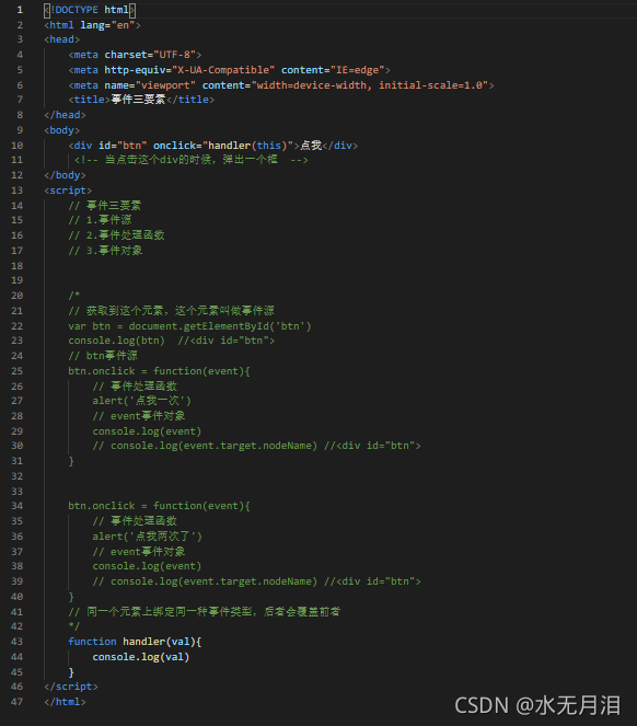 2.<div οnclick='handler()'>点我</div>