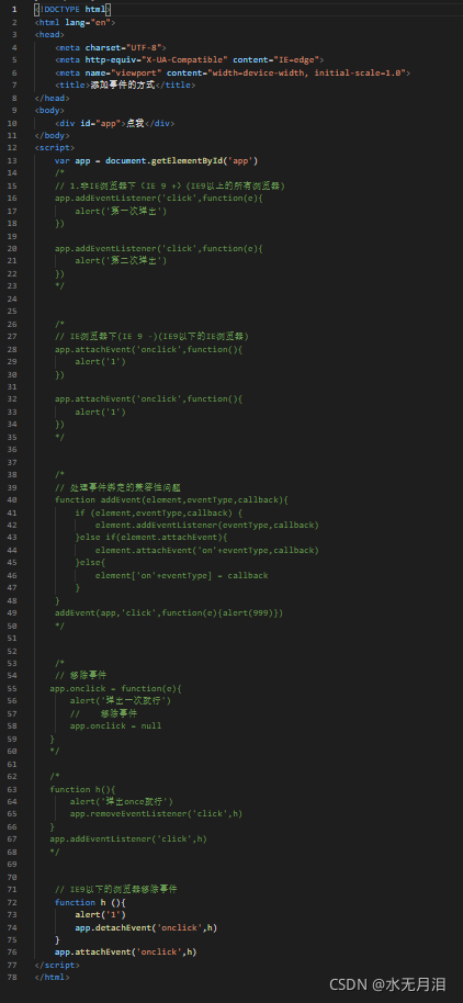 attachEvent("onclick",handler) //IE9- 添加事件
