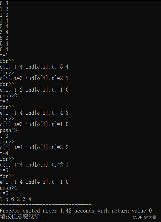 //cout <<"e[i].t="<<e[i].t<<' '<<"ind[e[i].t]="<<ind[e[i].t]<<' ';