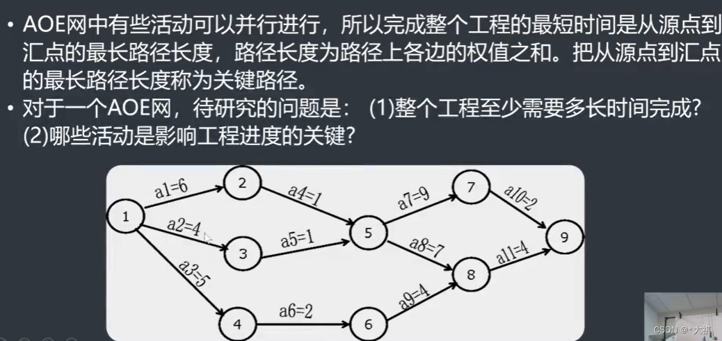 一个工程常被分为多个小的子工程,这些子工程被称为活动(Activity),在有向图中若以顶点表示活动,有向边表示活动之间的先后关系,这样的·图简称为AOV网。在AOV网中为了更好地完成工程,必须满足活动之间先后关系,需要将各活动排一个先后次序即为拓扑排序。