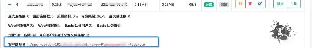 ./npc -server=你的IP:8024 -vkey=唯一验证密码 -type=tcp