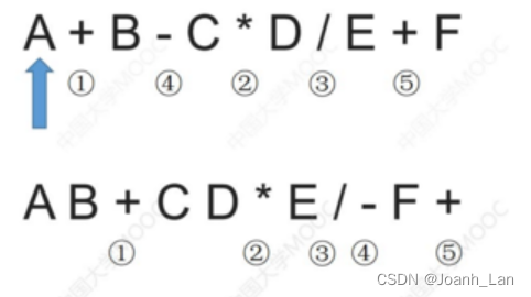 ②遇到KaTeX parse error: Invalid color: '界' at position 7: \color界̲限符。遇到“(”直接入栈;遇到“)”则依次弹出栈内运算符并加入后缀表达式,直到弹出“(”为止。注意:“(”不加入后缀表达式。