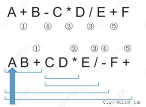 ②选择下一个运算符,按照「左操作数右操作数运算符」\color{red}「左操作数右操作数运算符」「左操作数右操作数运算符」的方式组合成一个新的操作数③如果还有运算符没被处理,就继续②