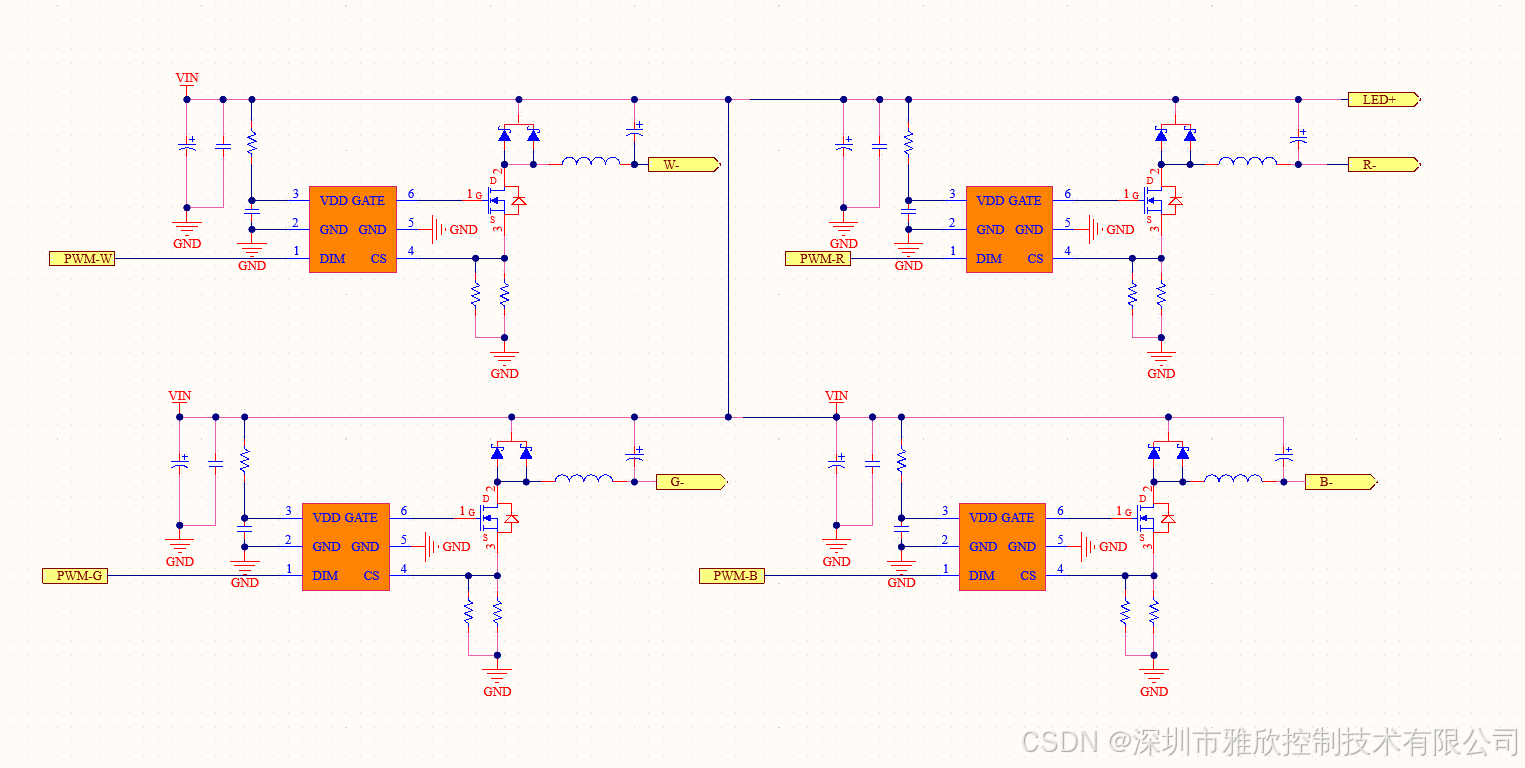 【四路共阳输出PWM调光应用原理图】