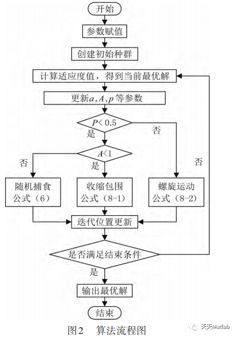 WOA算法假设当前最佳鲸群个体位置为最接近目标猎物的位置。这种捕食行为的数学表达式为: