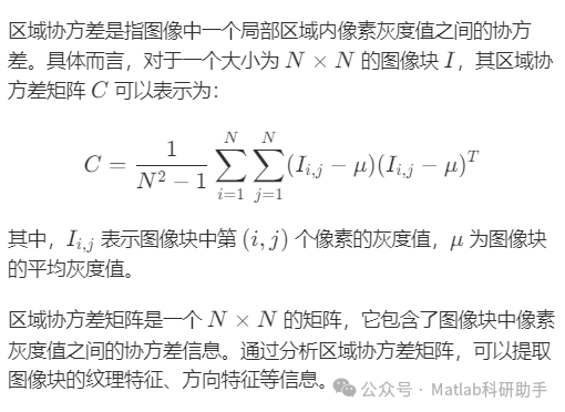 纹理特征提取: 区域协方差矩阵可以用来提取图像的纹理特征。例如,可以利用区域协方差矩阵的特征值和特征向量来描述图像纹理的方向和粗糙程度。