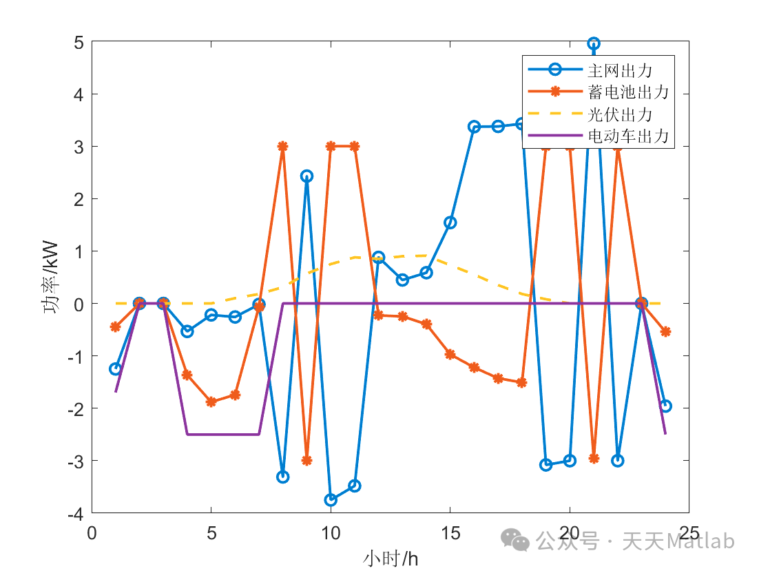 本文以包含光伏发电、储能系统、电动汽车以及与主网交互的微电网为研究对象,提出了一种基于粒子群优化算法的调度策略。该策略旨在最小化微电网的运行成本,同时满足负荷需求和各种约束条件。文章将详细阐述微电网的数学模型,包括各组件的功率特性和约束,以及PSO算法在微电网调度中的具体应用。