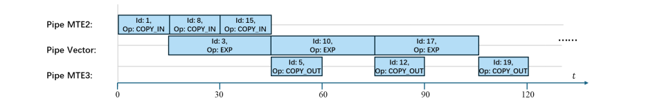 优良的调度方案能使得各执行单元交替工作,并行地流水化处理计算图各节点,最小化各执行单元等待时间,从而减少总执行时间,提升运行效率。