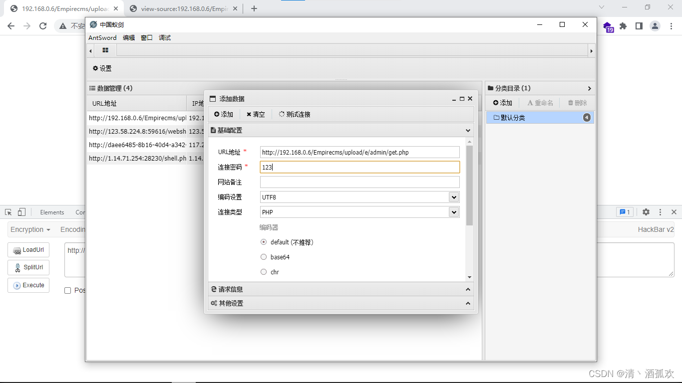 解决方法:使用蚁剑自带的base64编码器和解密器即可成功上线,这里也可以用自己的编码器和解密器绕过waf拦截