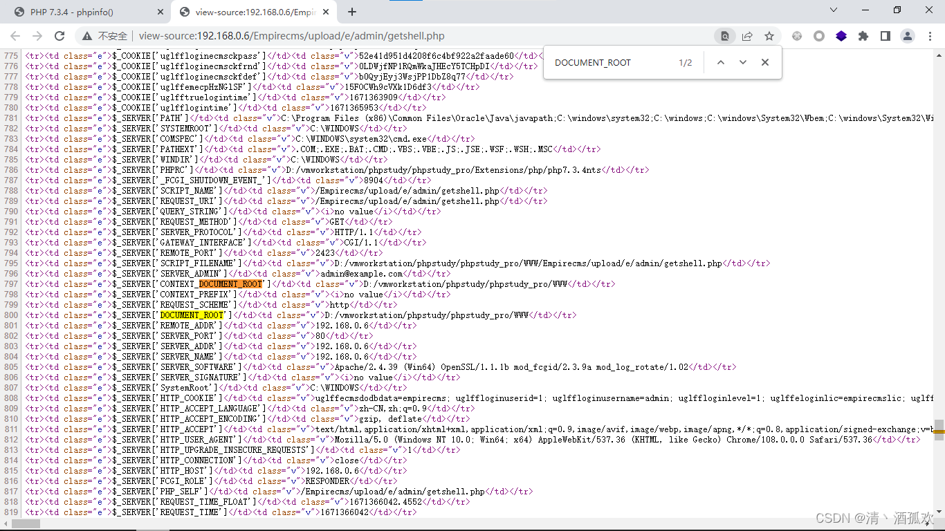 这里只是找到了php的绝对路径,还不是web所存储的路径,这时候查看源代码搜索DOCUMENT_ROOT查询网站所处的绝对路径