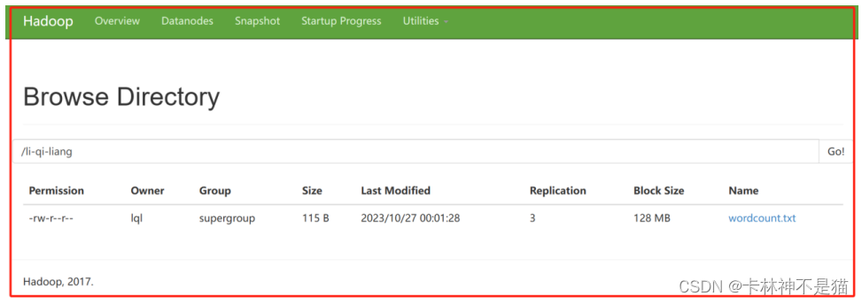 大数据技术原理(三):HDFS 最全面的 API 操作,你值得收藏 根据警告信息,属于少了log4j依赖,缺失配置log4j.properties文件,以及jar包冲突。解决方法如下:# 引入log4j依赖-->dependencygroupIdgroupIdartifactIdartifactIdversionversion1.7.7
