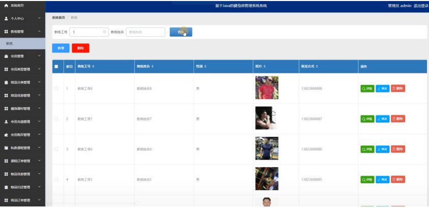 教练信息管理:管理员可以管理教练的详细信息,包括工号、姓名、性别、照片和联系方式。