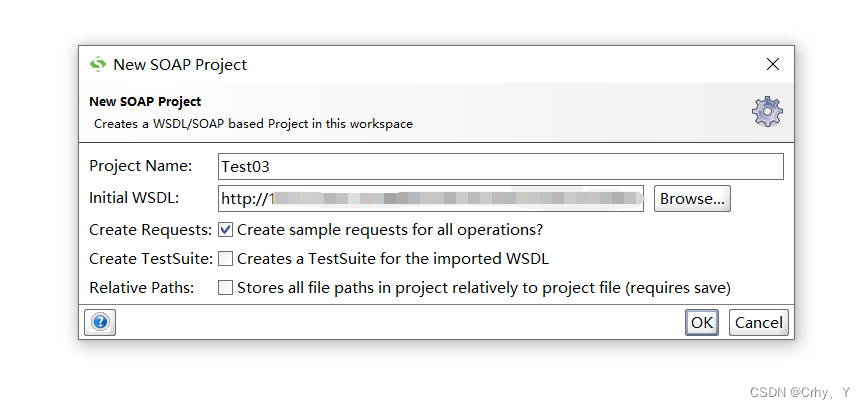 第二步:输入Project Name 名称 和 你的soap接口地址