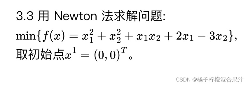 迭代公式: ![x^{k+1}=x^{k}-\left [ \triangledown ^{2}f(x^{k}) \right ]^{-1}\triangledown f(x^{k})](https://latex.csdn.net/eq?x%5E%7Bk+1%7D%3Dx%5E%7Bk%7D-%5Cleft%20%5B%20%5Ctriangledown%20%5E%7B2%7Df%28x%5E%7Bk%7D%29%20%5Cright%20%5D%5E%7B-1%7D%5Ctriangledown%20f%28x%5E%7Bk%7D%29)