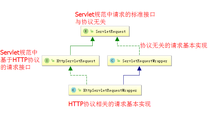 请求对象,就是在JavaEE工程中,用于发送请求的对象。我们常用的对象就是ServletRequest和HttpServletRequest,它们的区别就是是否和HTTP协议有关。