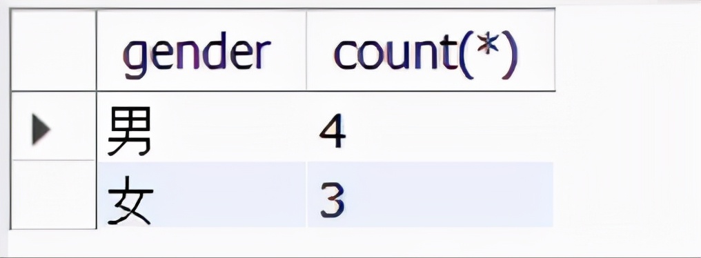 以上sql语句按照性别分组,并给出每组的人数,按照其他字段分组也是类似的。