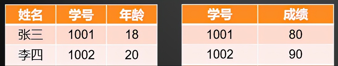 例如,有两个表:学员信息表和成绩表,有一个共同的:学号。