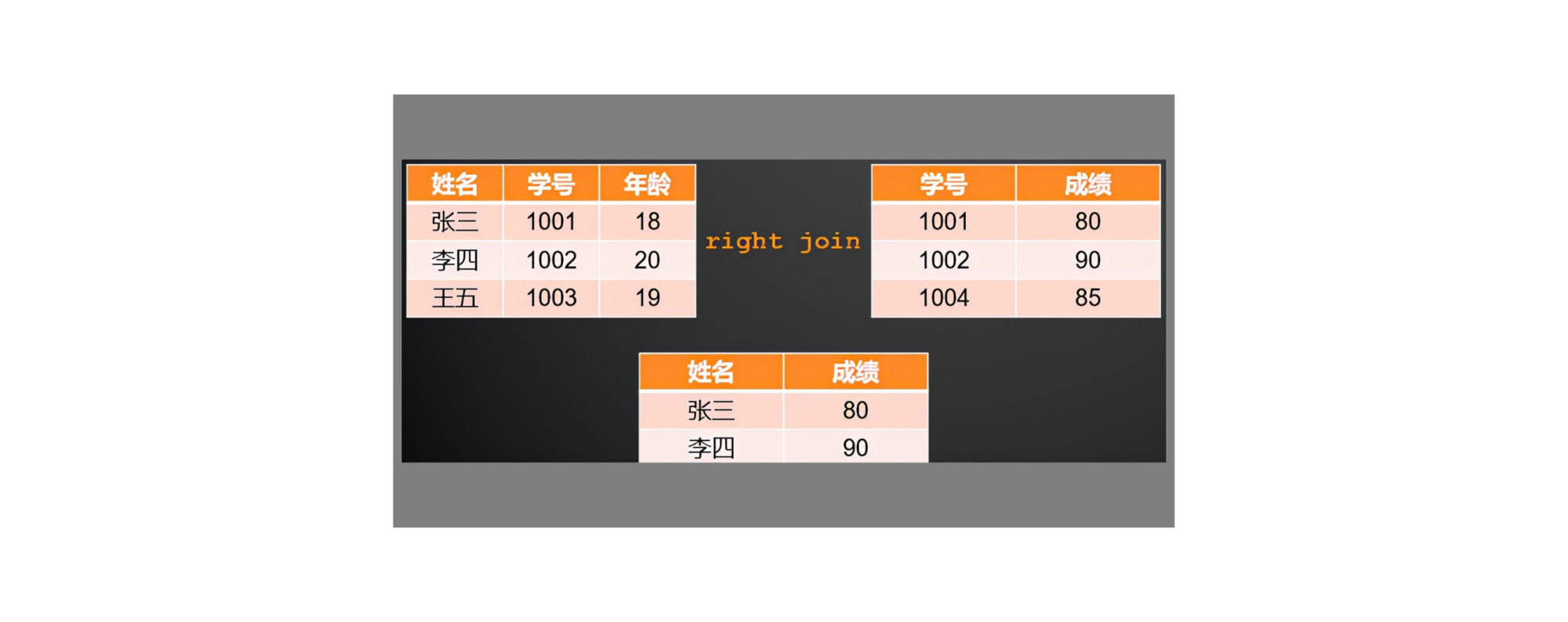 右连接是以右表为基准,去匹配左表中的记录,如果左表中没有对应匹配记录则为空。