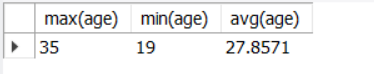 别名,就是as,意为用作,例如,查询出年龄的最大值、最小值和均值,sql语句为: