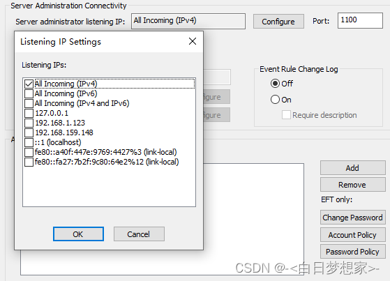 默认设置是ipv4的所有信息,当然嫌弃ipv4的安全性可以使用IPv6.此处的默认端口号1100,也是mctp服务的默认端口。