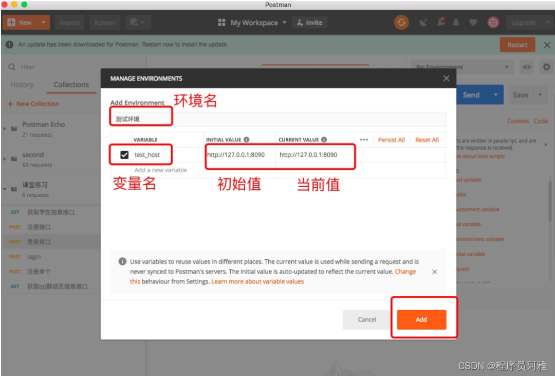 环境管理:用于添加修改环境及环境变量,以及全局变量
