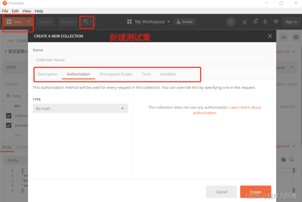①新建请求集:New按钮-->Collection 或 直接点击请求集列表上方的新建请求集按钮