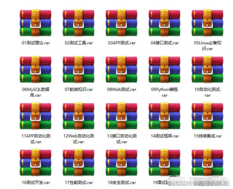 这些资料,对于【软件测试】的朋友来说应该是最全面最完整的备战仓库,这个仓库也陪伴上万个测试工程师们走过最艰难的路程,希望也能帮助到你!有需要的小伙伴可以点击关注公众号:程序员万金油免费领取