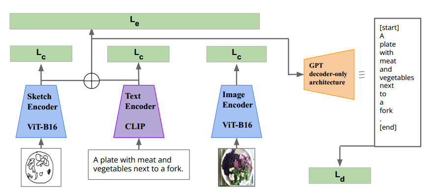 解码器:基于transformer的文本解码器,从草图和图像的嵌入中训练字幕生成器。