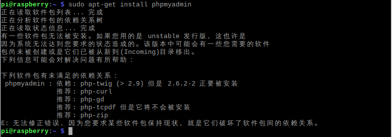 在树莓派系统中,安装phpmyadmin时出现这个问题