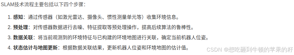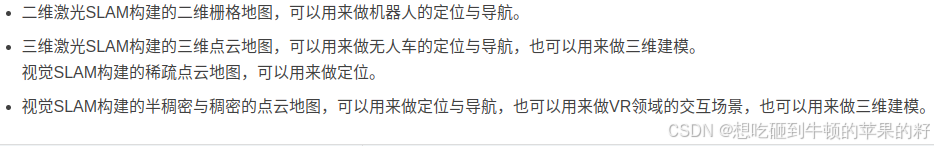 1. SLAM算法目的:机器人在没有先验知识的情况下,实时地构建周围环境的地图,并在地图上进行定位。相较于视觉SLAM,激光SLAM研究时间更久,在理论、技术和产品落地上更成熟。对机器人和自动驾驶企业来说,激光SLAM仍是目前最稳定、最主流的定位导航方法.