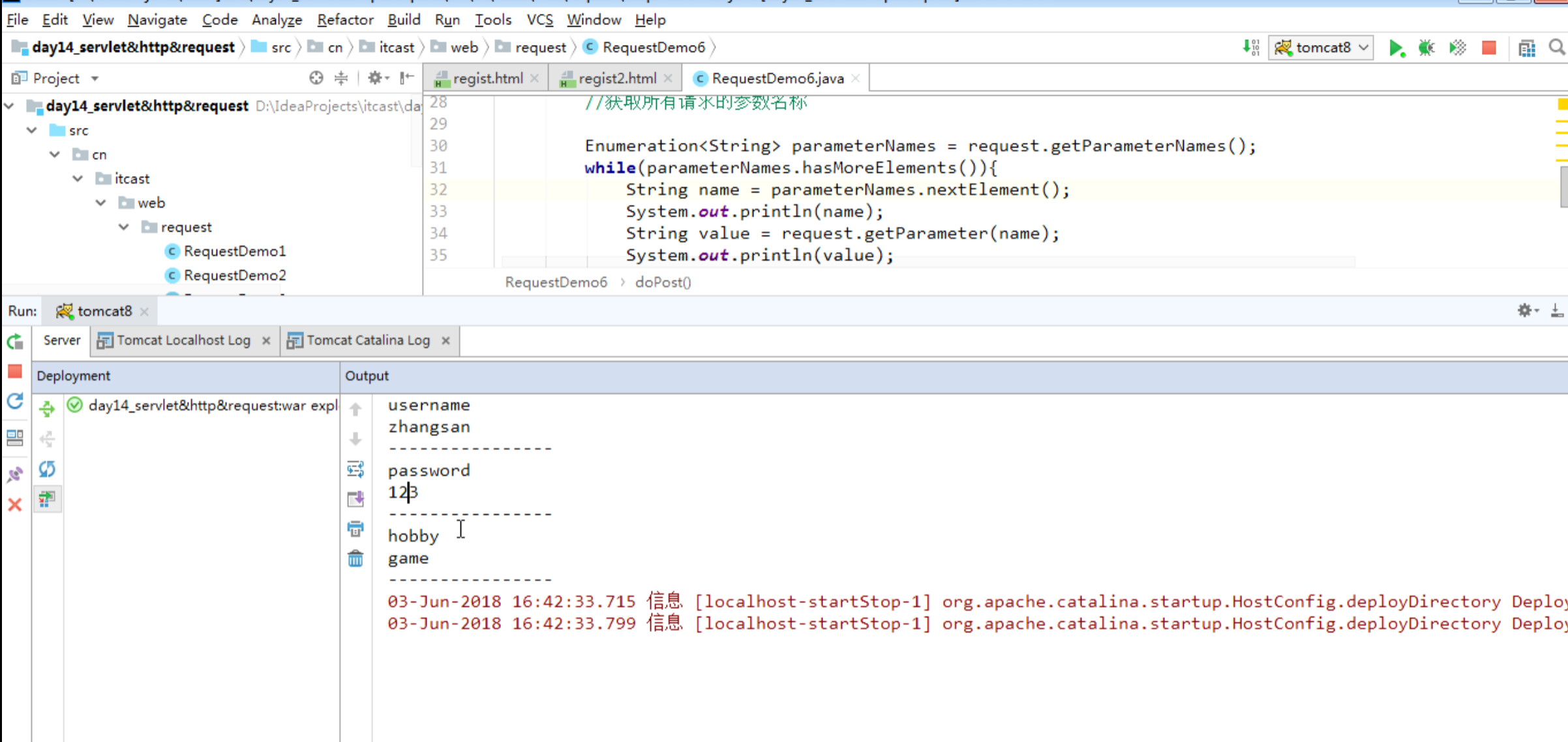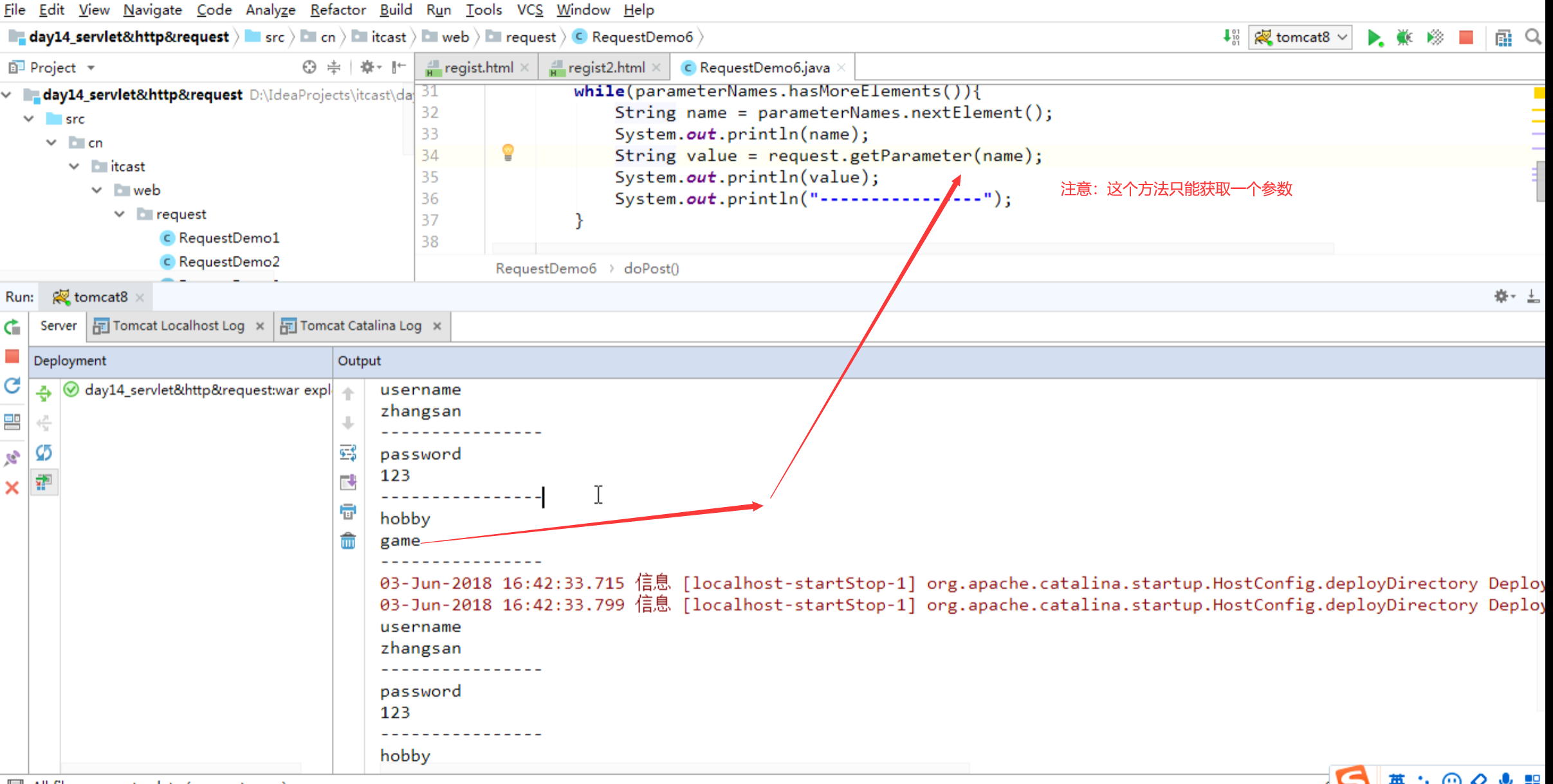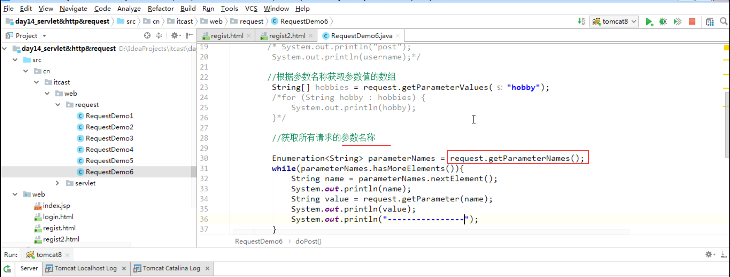 while (headerNames.hasMoreElements()) //读取请求消息头