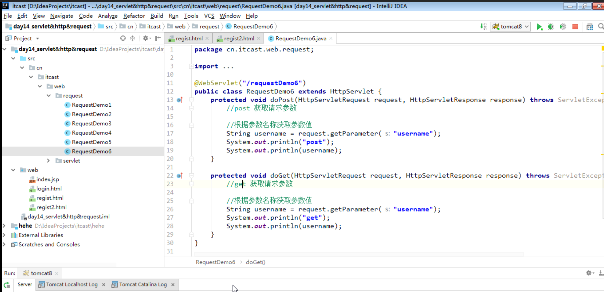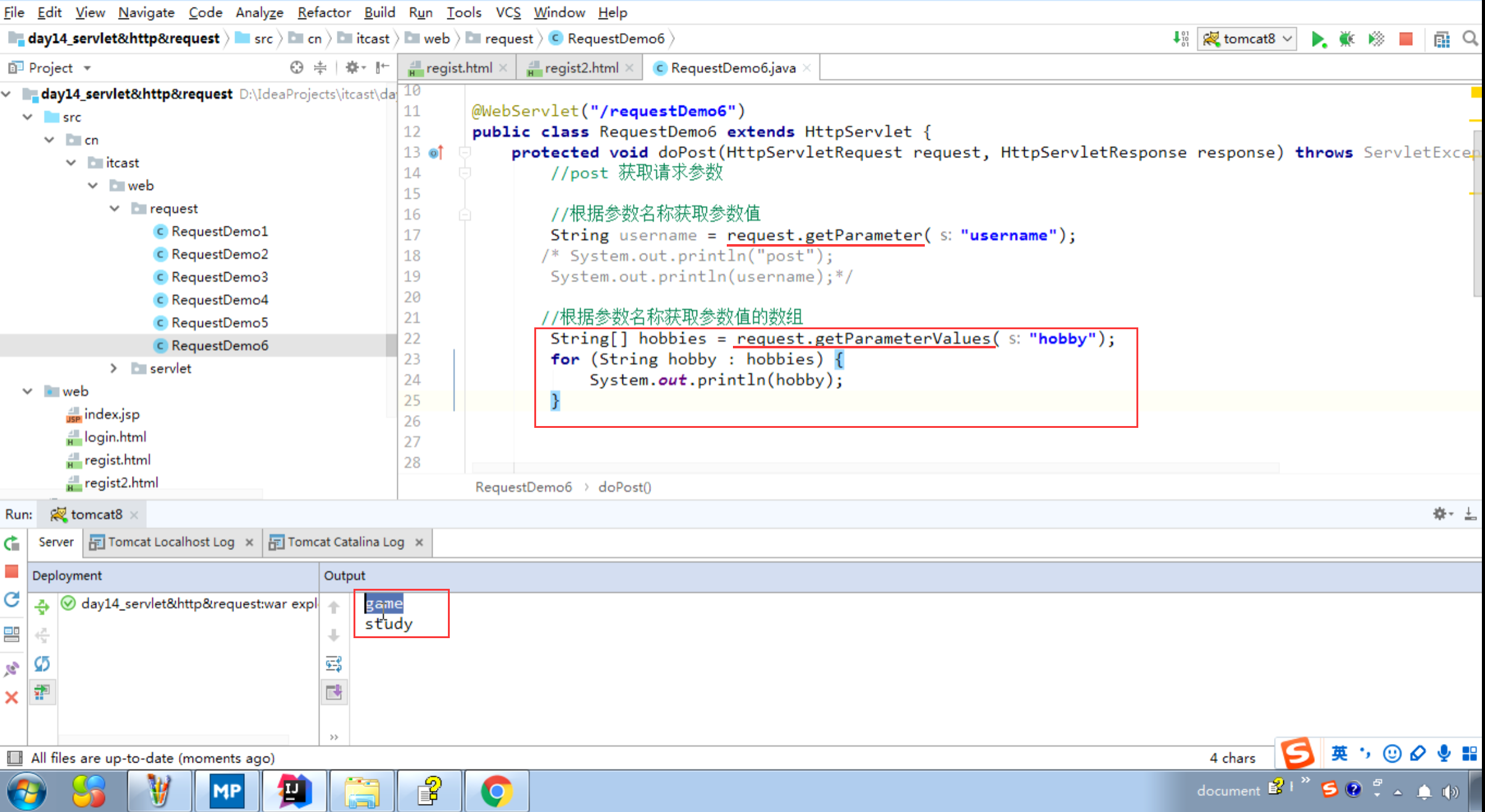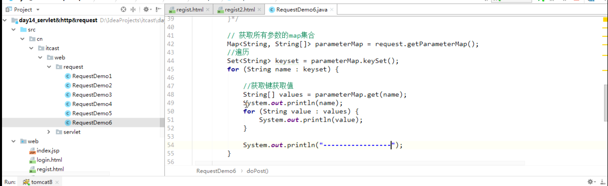 while (headerNames.hasMoreElements()) //读取请求消息头