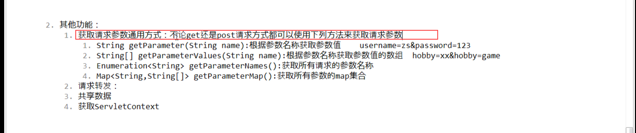 //用于将请求中的所有参数名和参数值装入一个 Map 对象中返回。