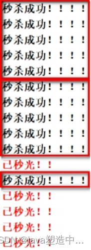 已经秒光,可是还有库存。原因,就是乐观锁导致很多请求都失败。先点的没秒到,后点的可能秒到了。
